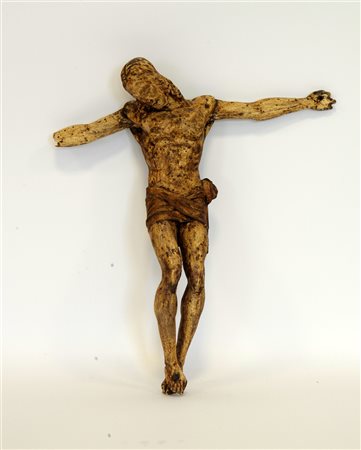 Arte del secolo XVIII, "Cristo Crocifisso", scultura lignea con tracce di policromia e braccia movibili (h cm 40) (difetti e mancanze)
