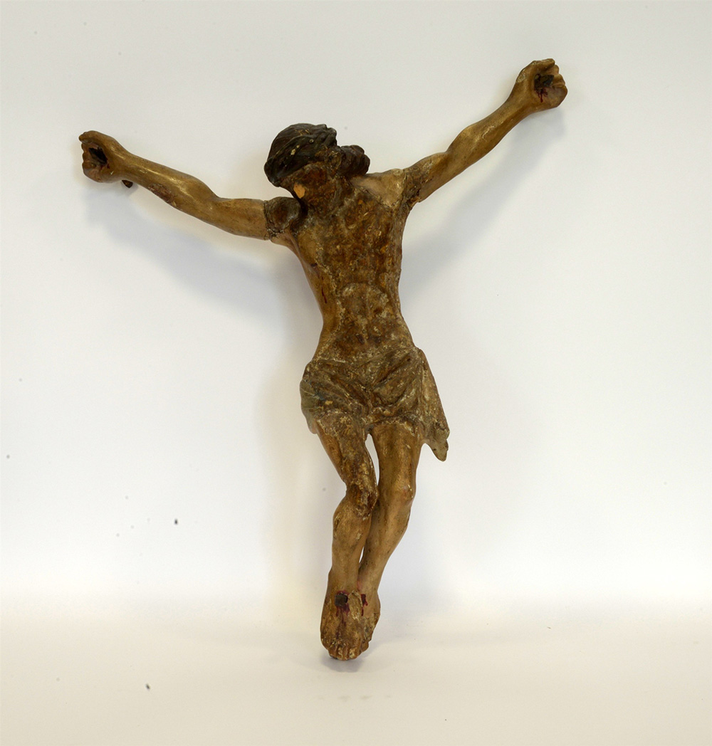 Arte del secolo XVIII "Cristo Crocifisso" scultura lignea decorata in policromia (h cm 74)(difetti e mancnze)