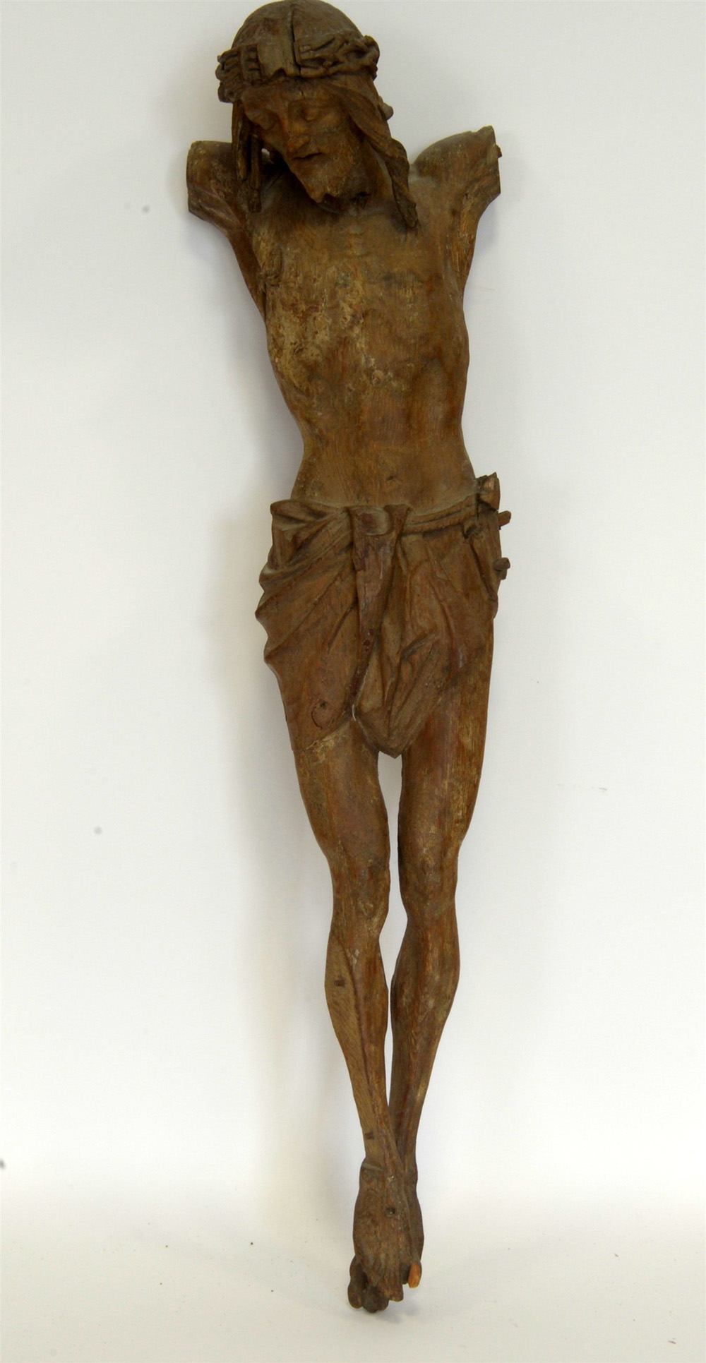Arte del sec. XVIII "Cristo crocifisso" scultura lignea decorata in policromia (h cm 72) (difetti e mancanze)
