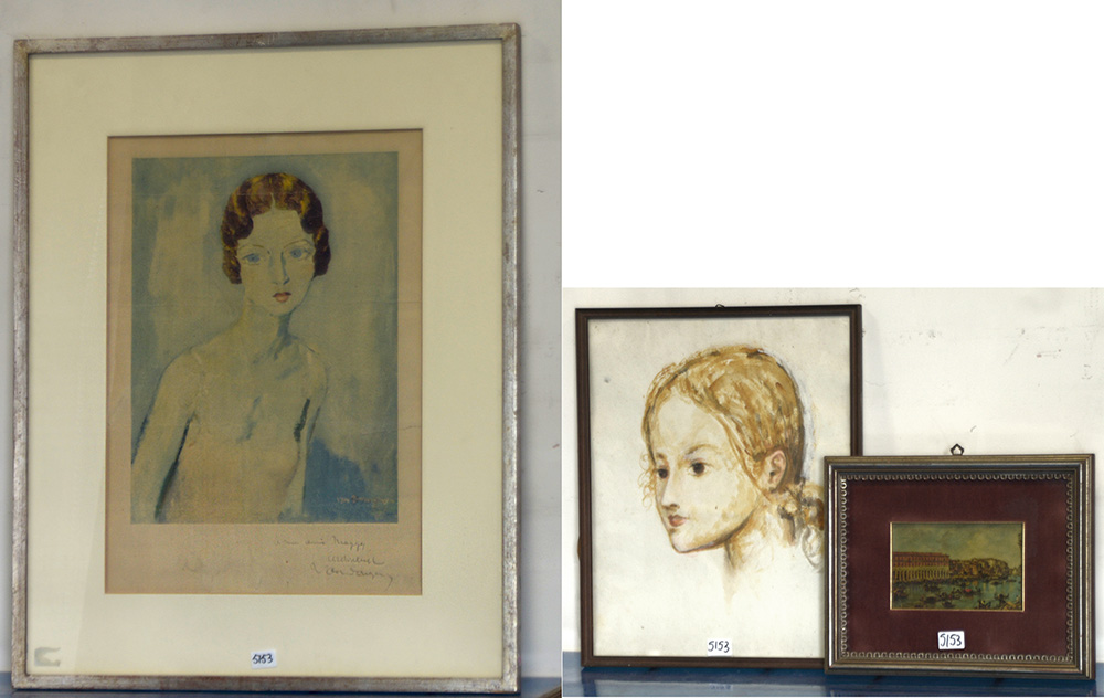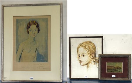 Lotto composto da tre riproduzioni in cornci di diversi autori di cui una con dedica in cornci (difetti)