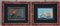 Coppia di gouaches naïf (cm 16,5x21,5) raffiguranti l'eruzione del vulcano Stromboli, in cornici (difetti)
