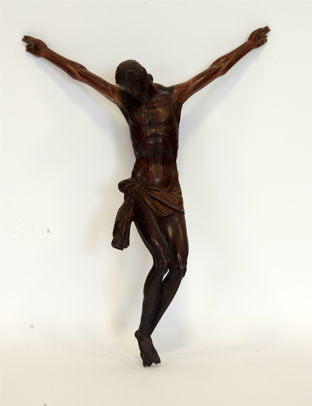 Arte del secolo XIX "Cristo Crocifisso" scultura in legno (h cm 42) (mancanze...