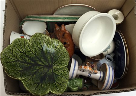Manifatture diverse, lotto composto da numerosi oggetti in ceramica. Un cartone (difetti)