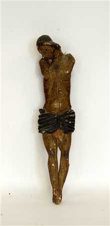 Arte del sec XVII "Cristo crocifisso" scultura lignea decorata in policromia (h cm 75) (difetti)
