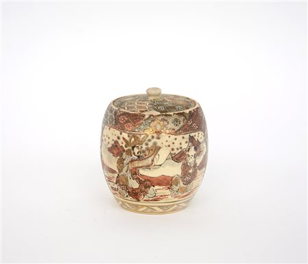 Piccola giara con coperchio in porcellana Satsuma. Giappone sec. XX(h.13 cm.)