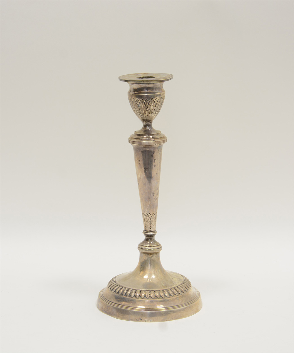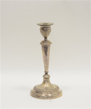 Candeliere in argento. Siracusa con datario (h. cm 27,5 ca.) (gr 370 ca.) (difetti)