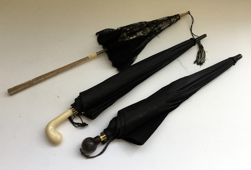 Lotto composto da tre ombrelli da donna, uno in custodia, di epoche e...