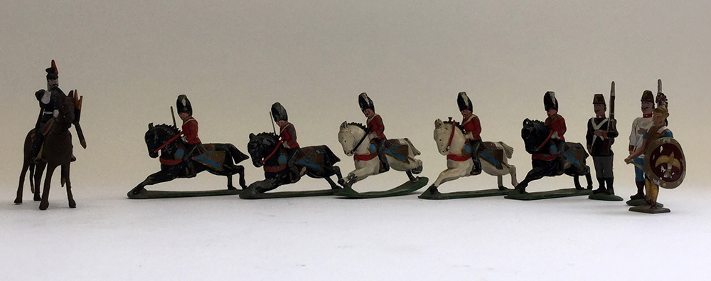 Lotto composto da nove soldatini di Piombo, di cui cinque a cavallo (difetti)