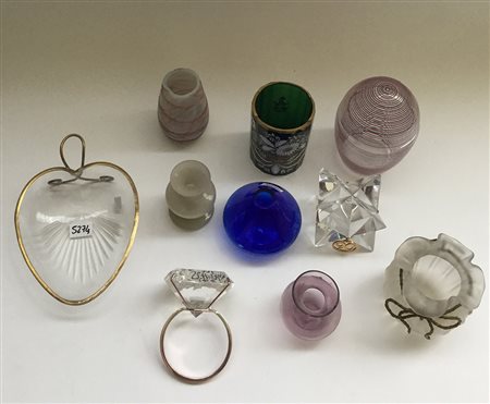 Lotto composto da quattro oggetti in vetro e metallo, quattro vasetti, un...