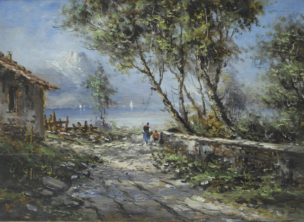 Antonio Brioschi (Vicenza, 1855 - 1920) Paesaggio Olio su tavola, cm. 35x26 Firma in basso a sinistra. € 250/450