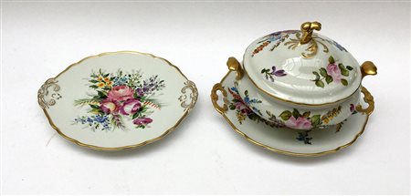 Lotto composto da una zuppiera con coperchio e due piatti in porcellana di...