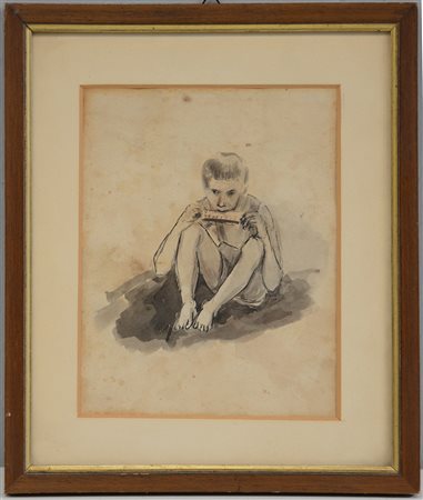Ignoto secolo XX "Suonatore di armonica" disegno a china ed acquerello (cm...