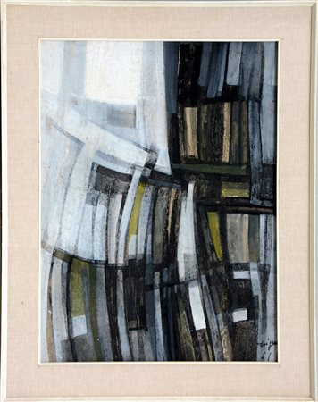 Firma indecifrata, "Senza titolo" tecnica mista (cm 74x54) firmato e datato '61 in basso a sinistra, in cornice