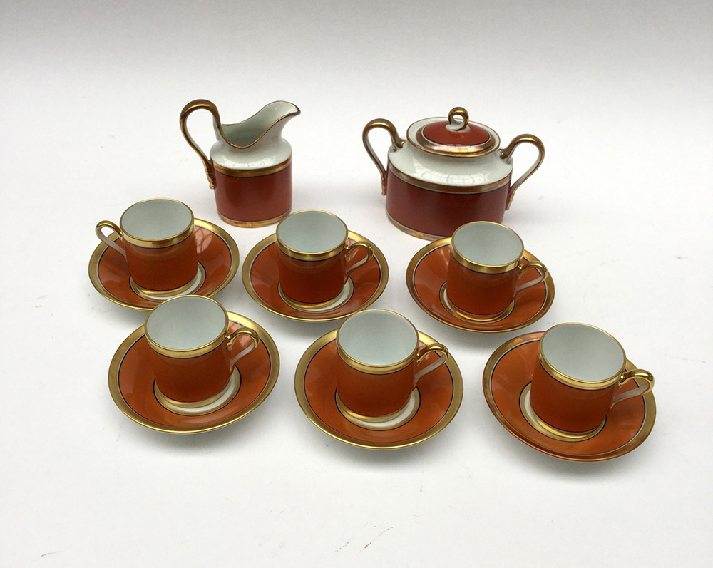 Servizio composto da caffettiera, zuccheriera e sei tazzine in ceramica, Richard Ginori, pittura di Doccia, in cartone originale