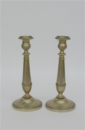Coppia di candelieri in bronzo con fusto tornito (h cm 29)