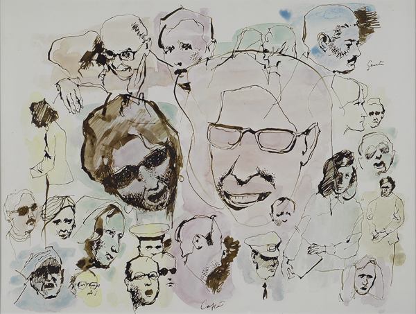 Nino Caffè (Alfredina, 1909 - Pesaro, 1975) Genti Acquerello e china su carta, cm. 30x40 Firma in basso al centro. Titolo in alto a destra. € 650/850