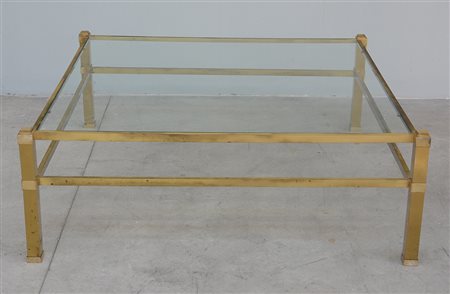 Tavolo da salotto di forma quadrata in ottone, piano in vetro (cm 101x44x101)...