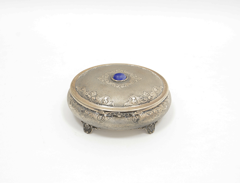 Scatola in argento con cabochon in lapis (cm 15x12 ca) (gr 300 ca) (difetti)