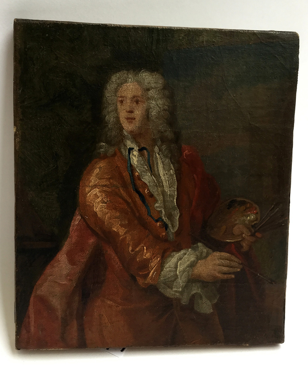 Scuola francese del secolo XVIII "Autoritratto" olio su tela (cm 22x19) (difetti)