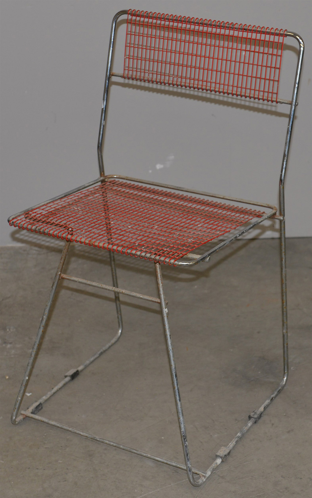 Sedia in tondino metallico con seduta e schienale laccato in rosso. Italia, anni '70.