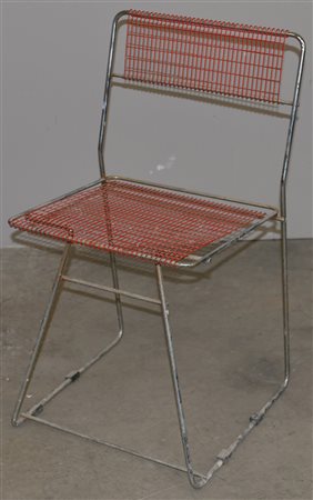 Sedia in tondino metallico con seduta e schienale laccato in rosso. Italia,...