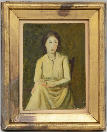 "Ritratto di donna seduta" olio su tela applicata su cartoncino (cm 35x26) in cornice (difetti)