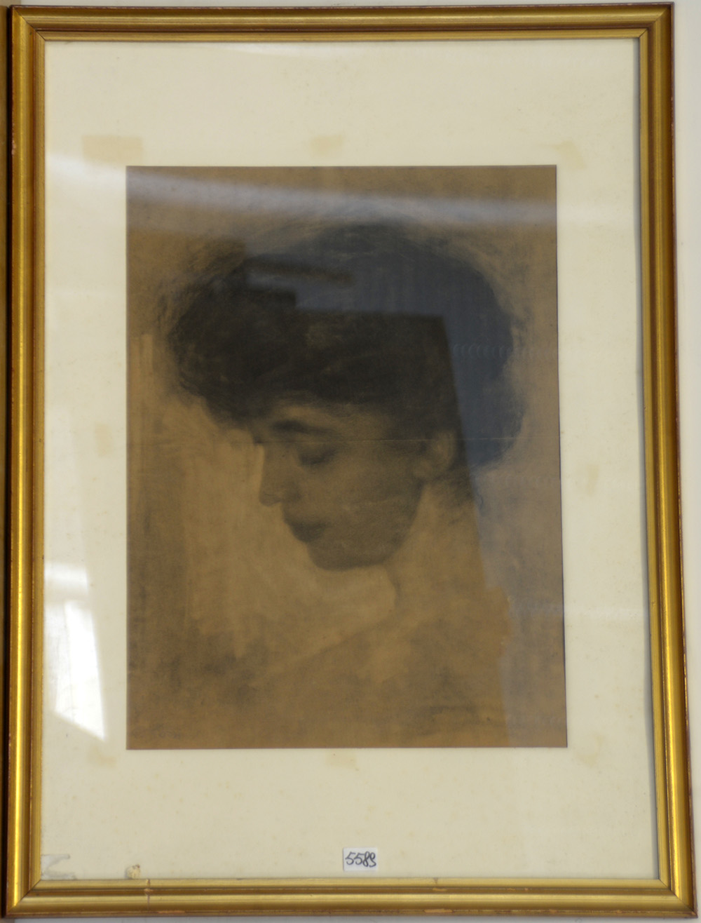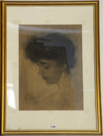 "Ritratto" carboncino su carta (cm 50x35) firmato in basso a sinistra in cornice (difetti)