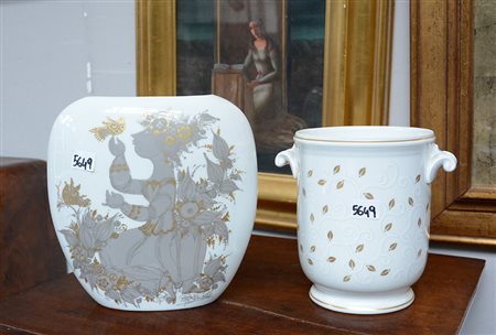 Lotto composto da un rinfrescatoio biansato marcato Richard Ginori e un vaso decorato con figura femminile marcato Studio-Linie per Rosenthal (h max cm 22)
