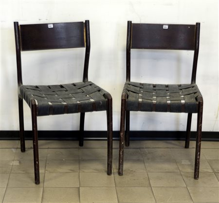 Coppia di sedie con schienale a giorno e seduta a fasce intrecciate in...
