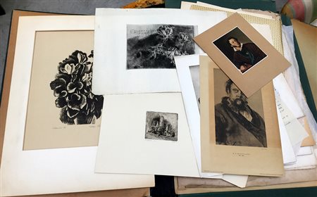 Cartelletta contenente numerose stampe e incisioni di epoca e soggetto differenti (difetti).