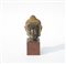 Testa di Buddha in bronzo dorato su base in legno. Manifattura dell'Asia Sud-orientale (difetti) (h. 12 cm.)