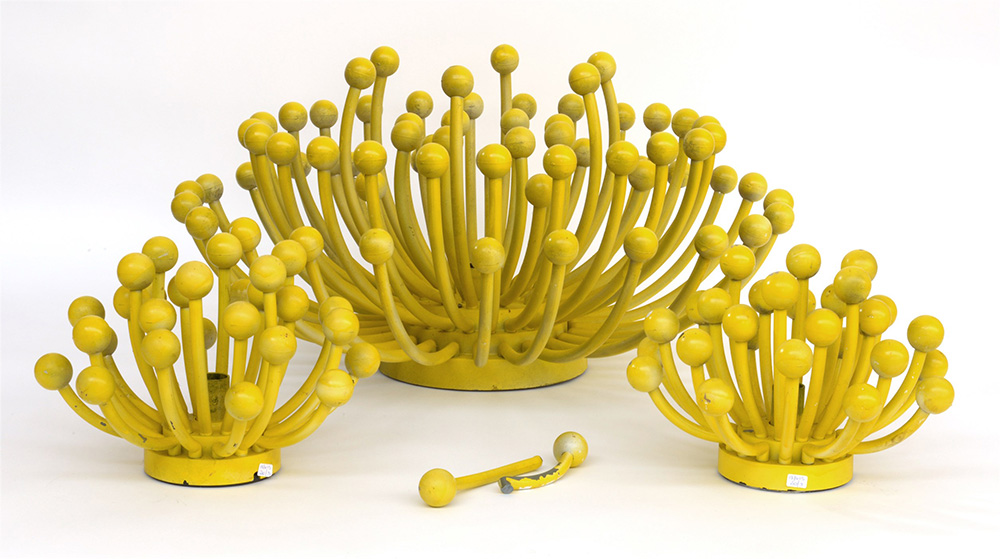 Lotto di tre lampade in plastica gialla modello "Pistillo ". Manifattura Studio Tetrarch per Valenti, anni '60. (gravi difetti)