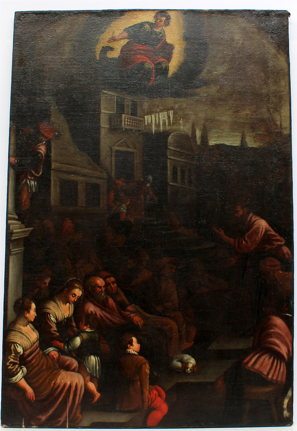 Ambito di Bassano, fine secolo XVIII ''Paesaggio con figure'' olio su tela (cm 115x78) frammento