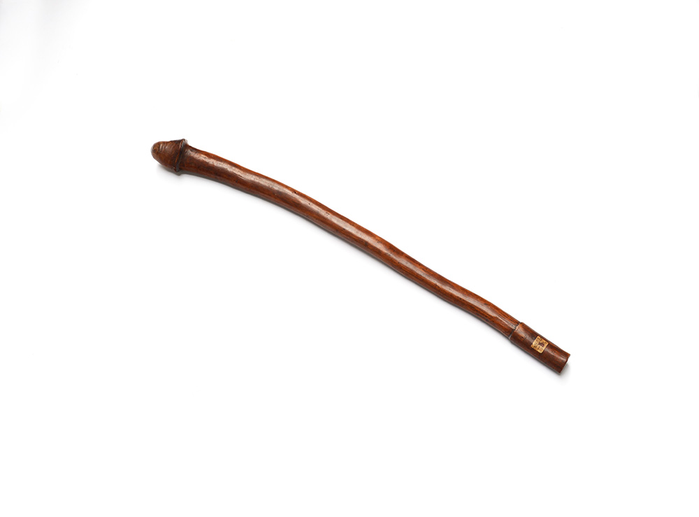 Oggetto rituale di forma fallica in legno intagliato (h cm 80) (difetti)