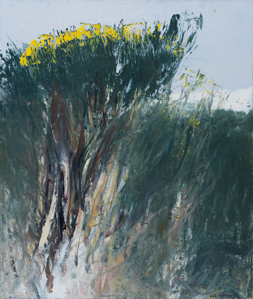 GIANCARLO CAZZANIGA Monza (Mi) 20/09/1930 - Ginestre, olio su tela cm. 60x50, firma in basso a destra, titolo e firma al retro, dichiarazione d'autenticità dell'artista su foto.