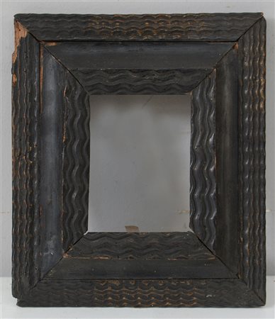 Antica cornice in legno ebanizzato intagliato a motivi ondulati (luce cm 11x14) (difetti e mancanze)