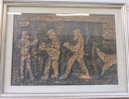 "I doni" tecnica mista (cm 70x100) al retro dedica, firma, timbri e cartiglio, in cornice (difetti)