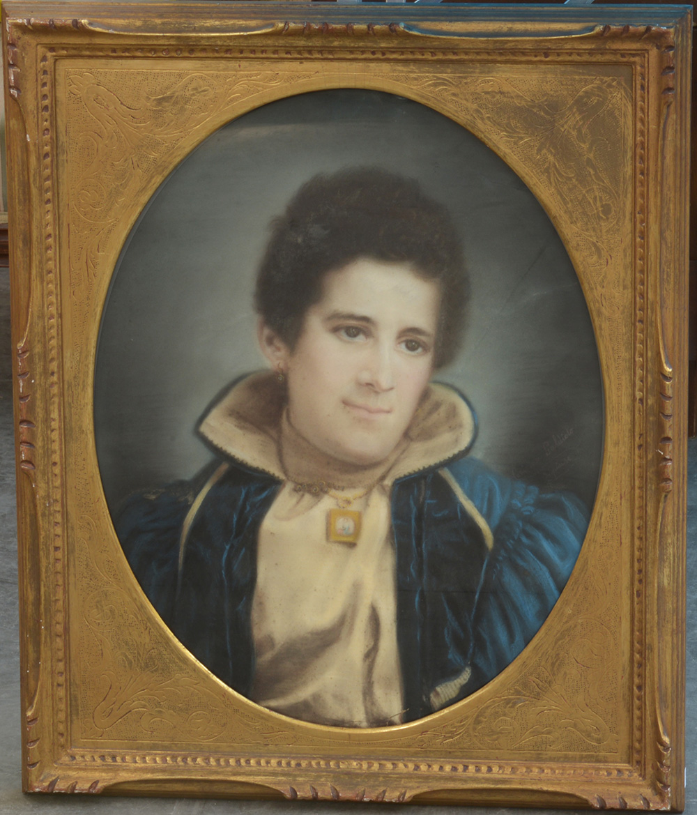 Ignoto, "Ritratto di gentildonna" pastello su cartoncino (cm 58x46) reca firma Corinne Galdiolo in centro a destra, in cornice (difetti e mancanze)