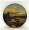 "Paesaggio al tramonto" piatto in terracotta dipinto ad olio (d cm 44) Al retro: firmato