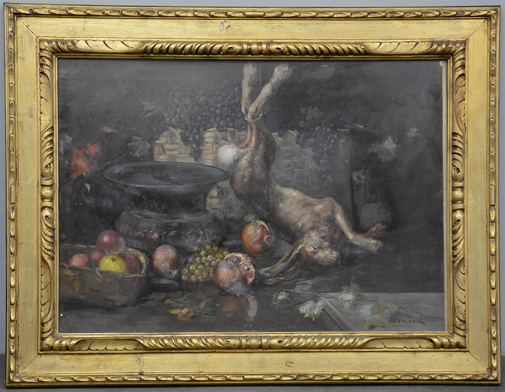 Aristotile Vicenzi (1879 - 1950)"Natura morta con cacciagione" olio su...