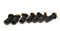 Gruppo di sette appliques in ottone con portalampade in metallo dipinto nero. Anni '60. (difetti e mancanze)