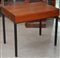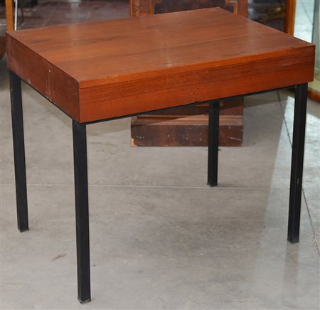 Scrittoietto a due cassetti in linea sottopiano, gambe in metallo brunito. Anni '70. (cm 80x70x58) (lievi difetti)