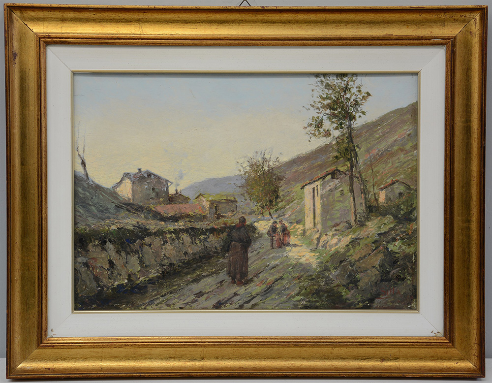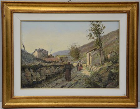 "Strada montana" olio su tavola (cm 34,5x50) firmato in basso a destra, in cornice (lievi difetti)
