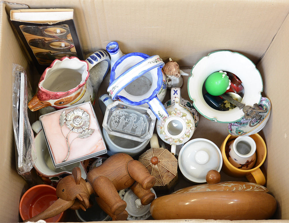 Cartone contenente numerosi oggetti di materiali differenti principalmente per la tavola (difetti)