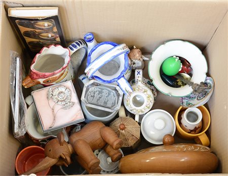 Cartone contenente numerosi oggetti di materiali differenti principalmente...