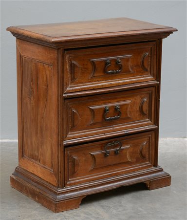 Comoncino tre cassetti pannellati e riquadrati con piedi a mensola...