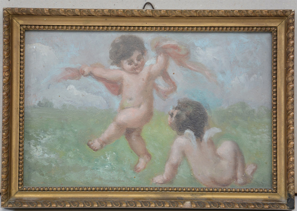 Scuola del sec. XIX "Amorini" olio su tavola (cm 14x22) in cornice