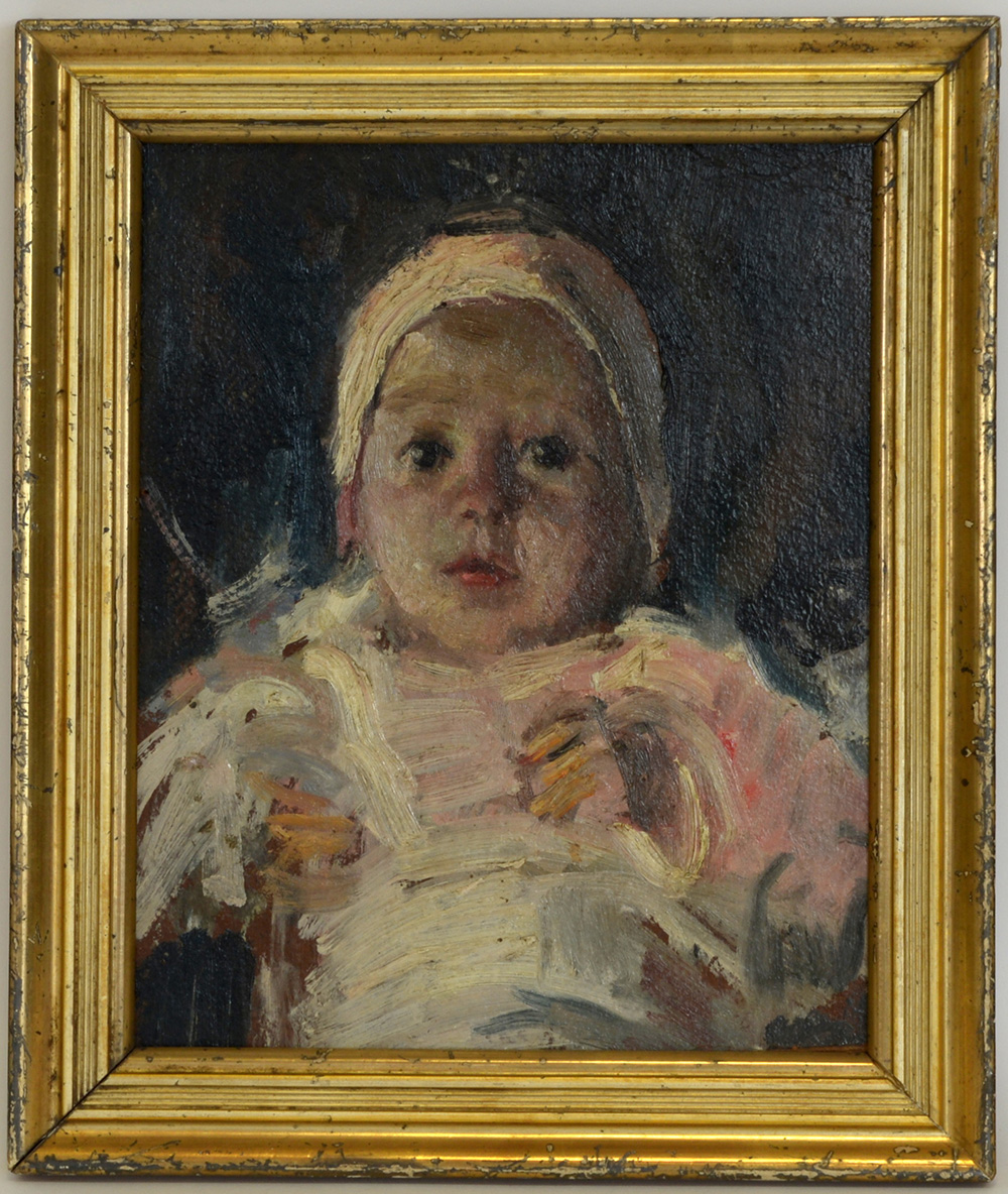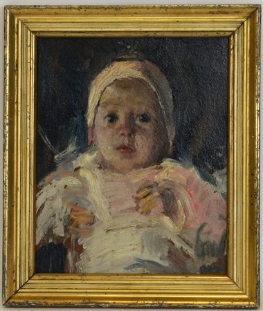 "Ritratto di mia figlia" Giugno 1937 olio su cartone (cm 22x27) Al retro: firmato, titolato, datato. In cornice (difetti)