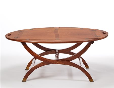 Tavolino in legno massello con piano a vassoio asportabile. Italia, anni '40. (cm 122x53x91) (difetti e restauri)