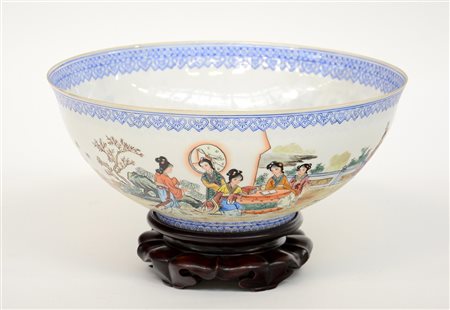 Ciotola in porcellana a guscio d'uovo decorata con figure femminili, base in...